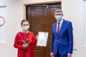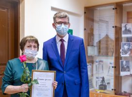 Rector of the TSPU Andrei Nikolaevich Makarenko continues his meetings with the teaching staff of the university to sum up the annual results of the work and present honorary awards. Meetings are organized in small groups due to safety purposes. This time awards went to the representatives of the Faculty of Biology and Chemistry and the Faculty of Physical Culture and Sports.